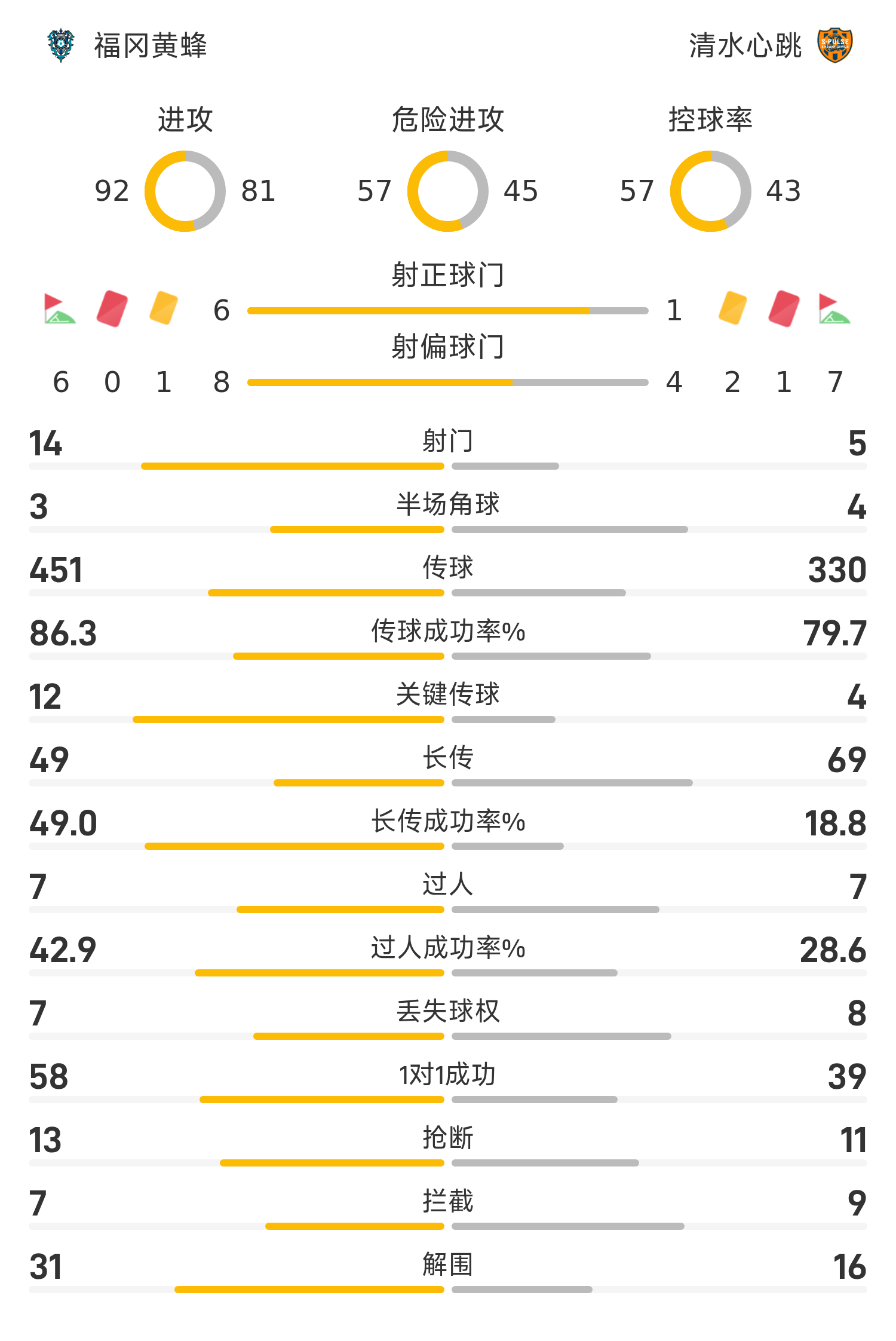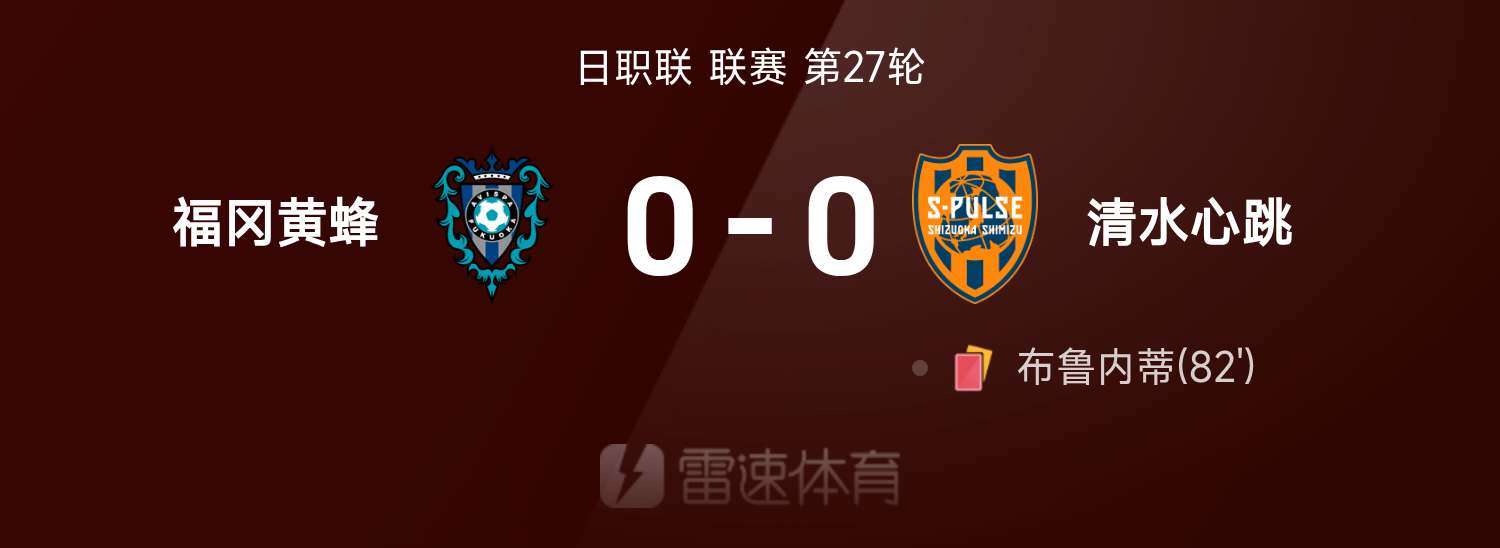 日职联战报:双方都没进球,互交白卷,福冈黄蜂0-0闷平清水心跳