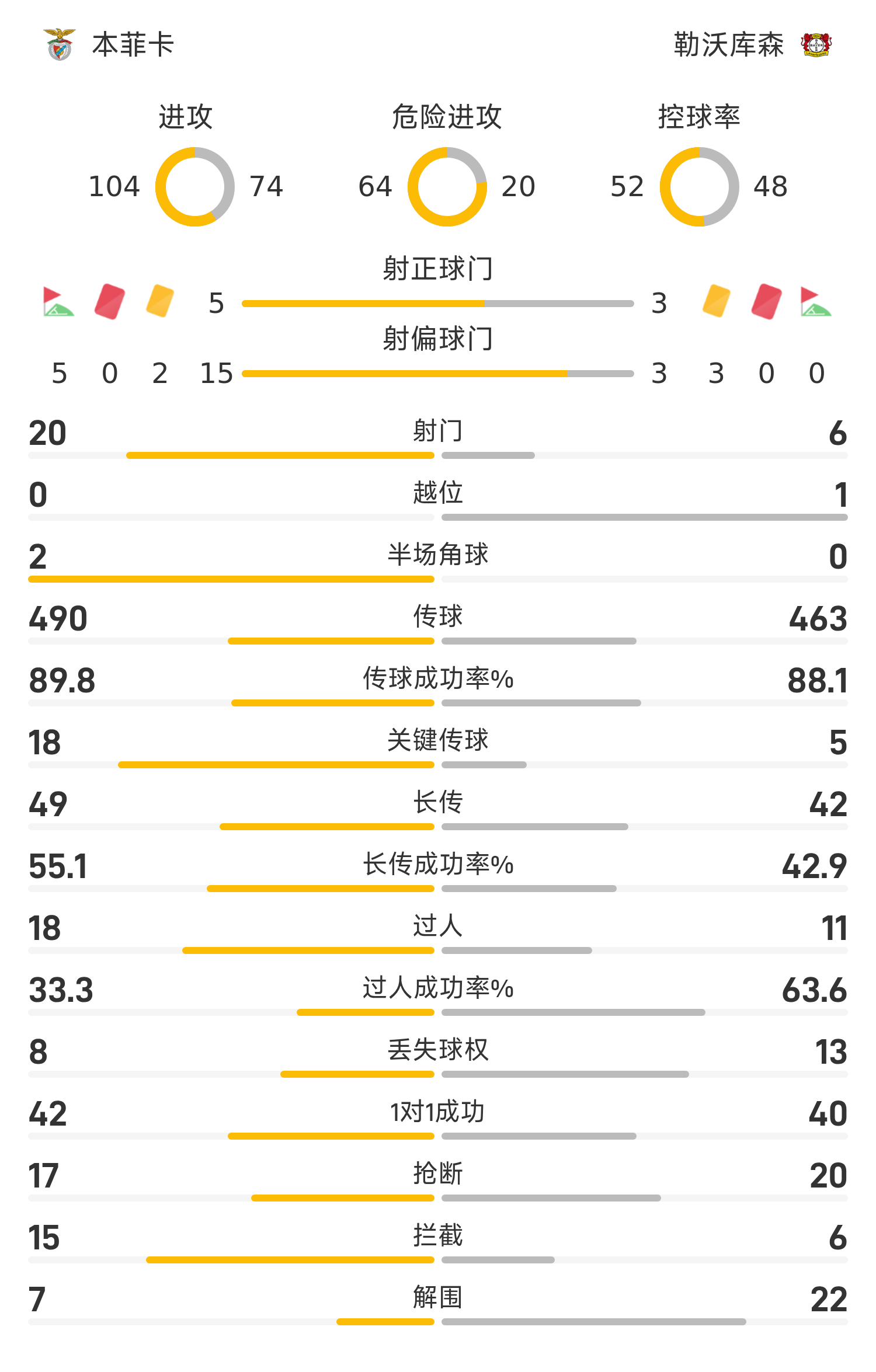 26分钟,本菲卡禁区内威胁攻门两连击,均被门将化解