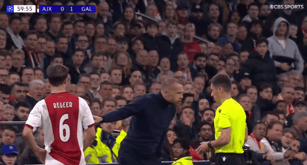 60’黄牌-海廷加(阿贾克斯) 对判罚表达异议
