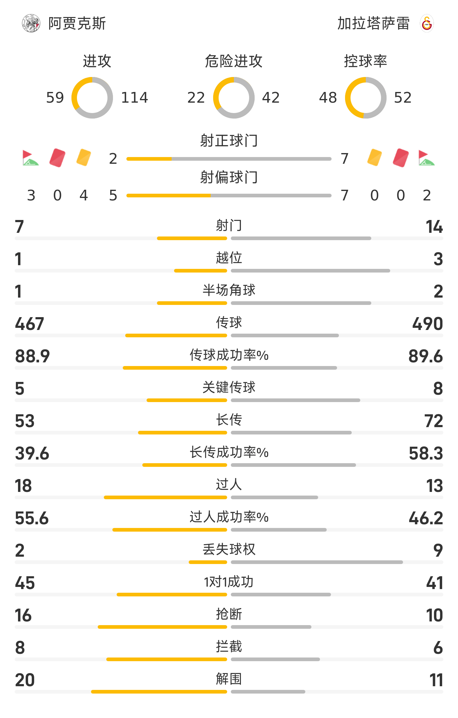 2UP体育11月06日讯 25/26赛季欧冠联赛第4轮,加拉塔萨雷3-0战胜阿贾克斯。
