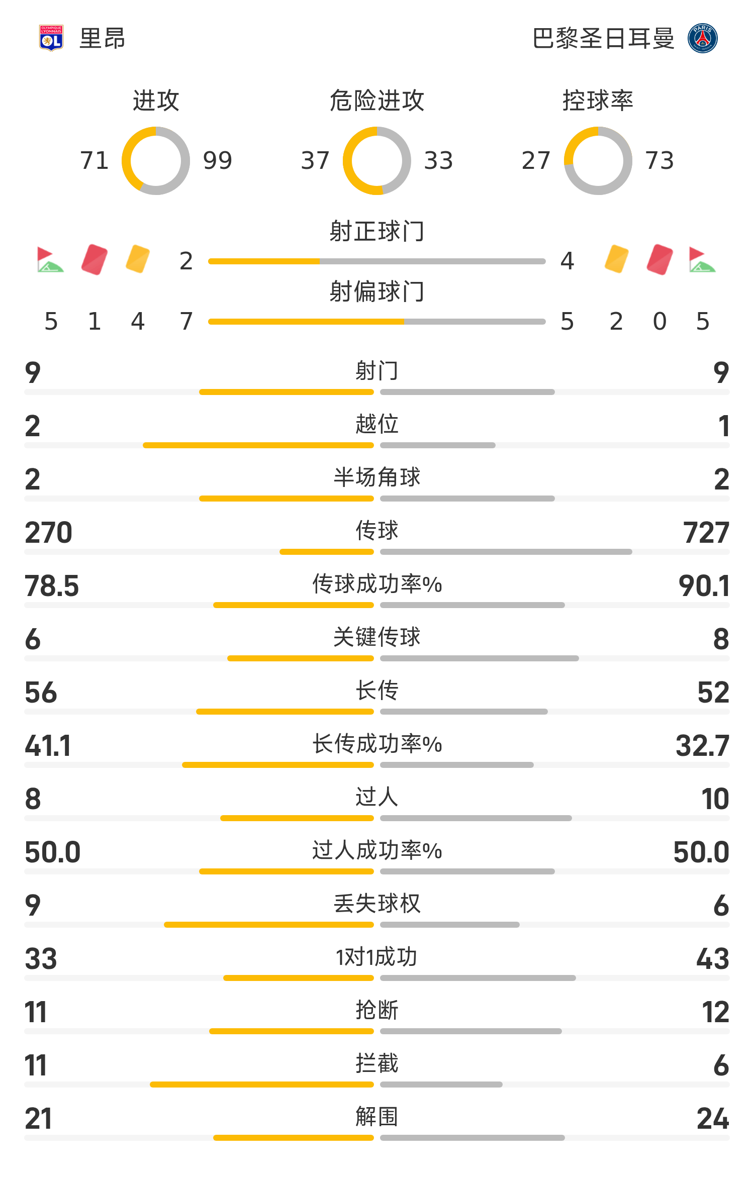 90’毫无办法!大巴黎面对里昂的铁桶阵,只能不断在外围倒脚