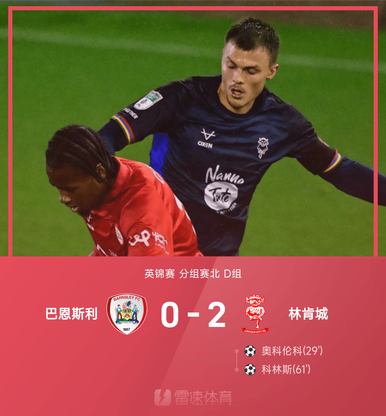 英锦赛战报:奥科伦科破门,科林斯建功,林肯城2-0巴恩斯利
