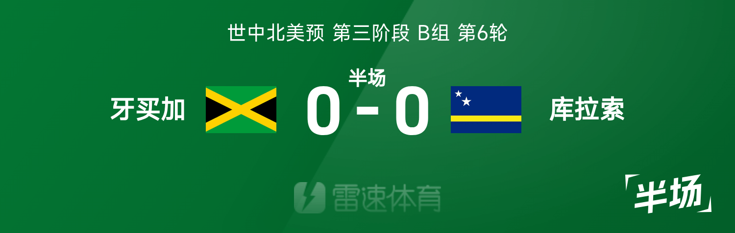 2UP体育11月19日讯 26赛季世中北美预第三阶段B组第6轮,牙买加对阵库拉索。半场结束,比分仍然是牙买加0-0库拉索,门将们可能都在做瑜伽伸展。