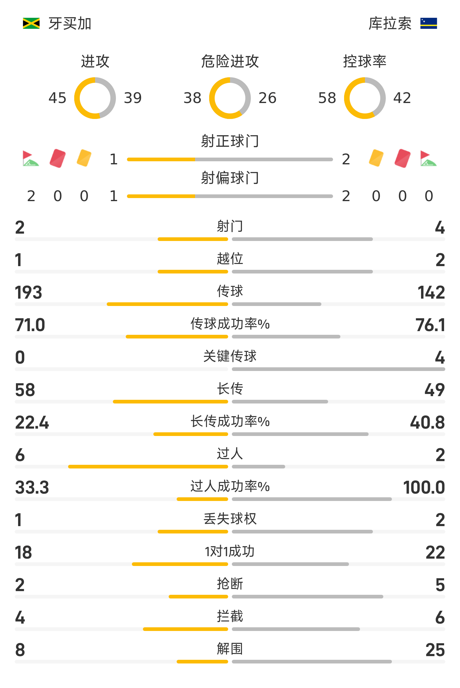 2UP体育11月19日讯 26赛季世中北美预第三阶段B组第6轮,牙买加对阵库拉索。