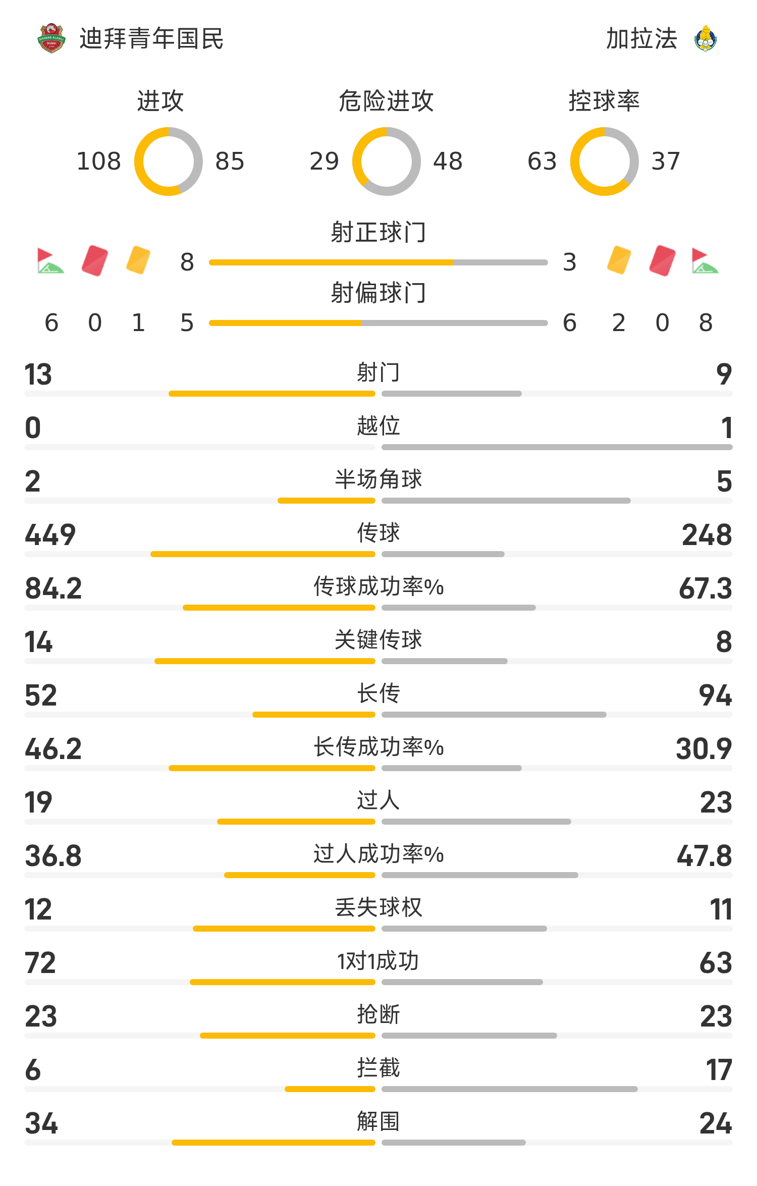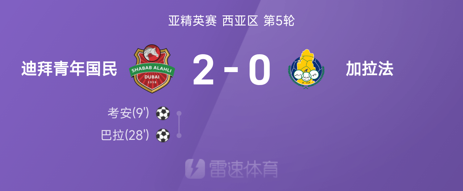 2UP体育11月25日讯 25/26赛季亚精英赛西亚区第5轮,迪拜青年国民2-0战胜加拉法。