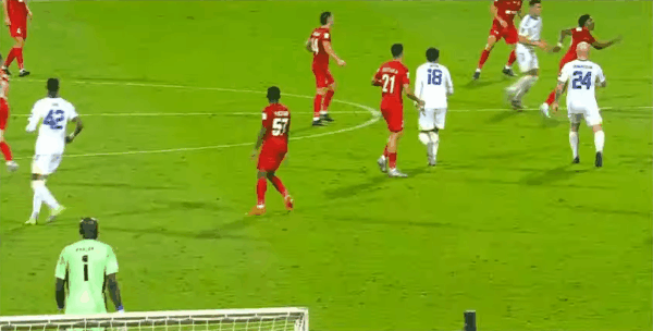 73’卡塔比亚任意球传至禁区,普兰尼克头槌攻门,皮球被门将扑出